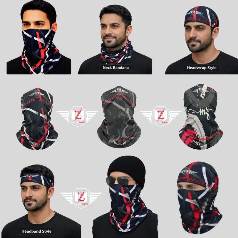 • The MotoZen Multi-Functional Neck Gaiter is a premium riding face cover built for modern bikers. Crafted with breathable, lightweight, and stretchable fabric, it offers all-season comfort while protecting you from dust, wind, sun, and cold weather.